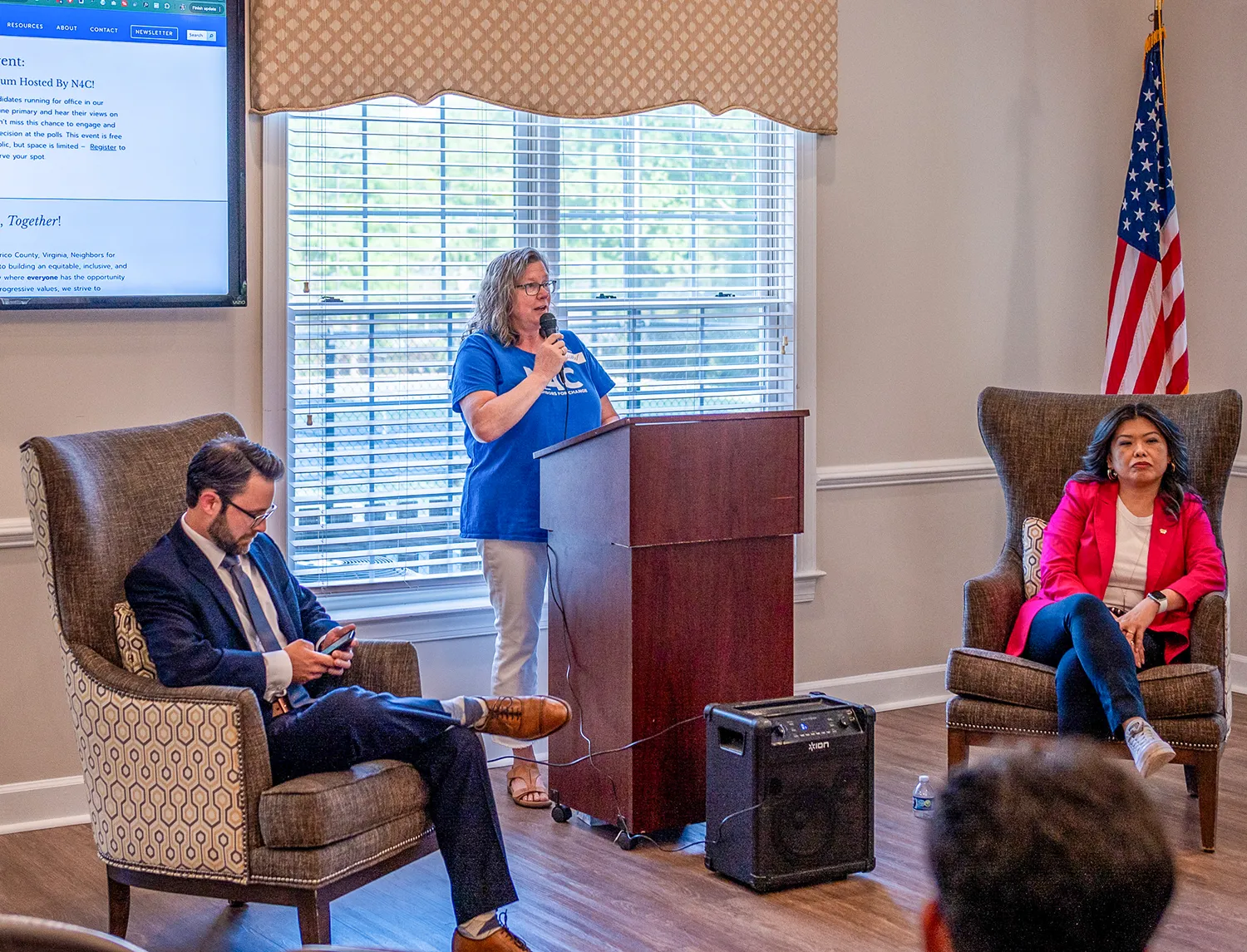 A standing-room only crowd packed the Wyndham clubhouse Wednesday night, to hear from the two Democrats running in the Virginia HD57 primary. Neighbors for Change organized the forum.