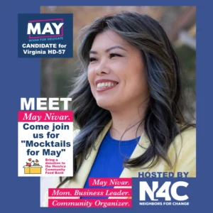 Neighbors For Change is proud to stand behind May Nivar, Democratic Candidate for Delegate in HD57. May has been knocking on doors and talking with voters across the district, but with less than 100 days to go before the election, she needs our support to flip this seat blue.